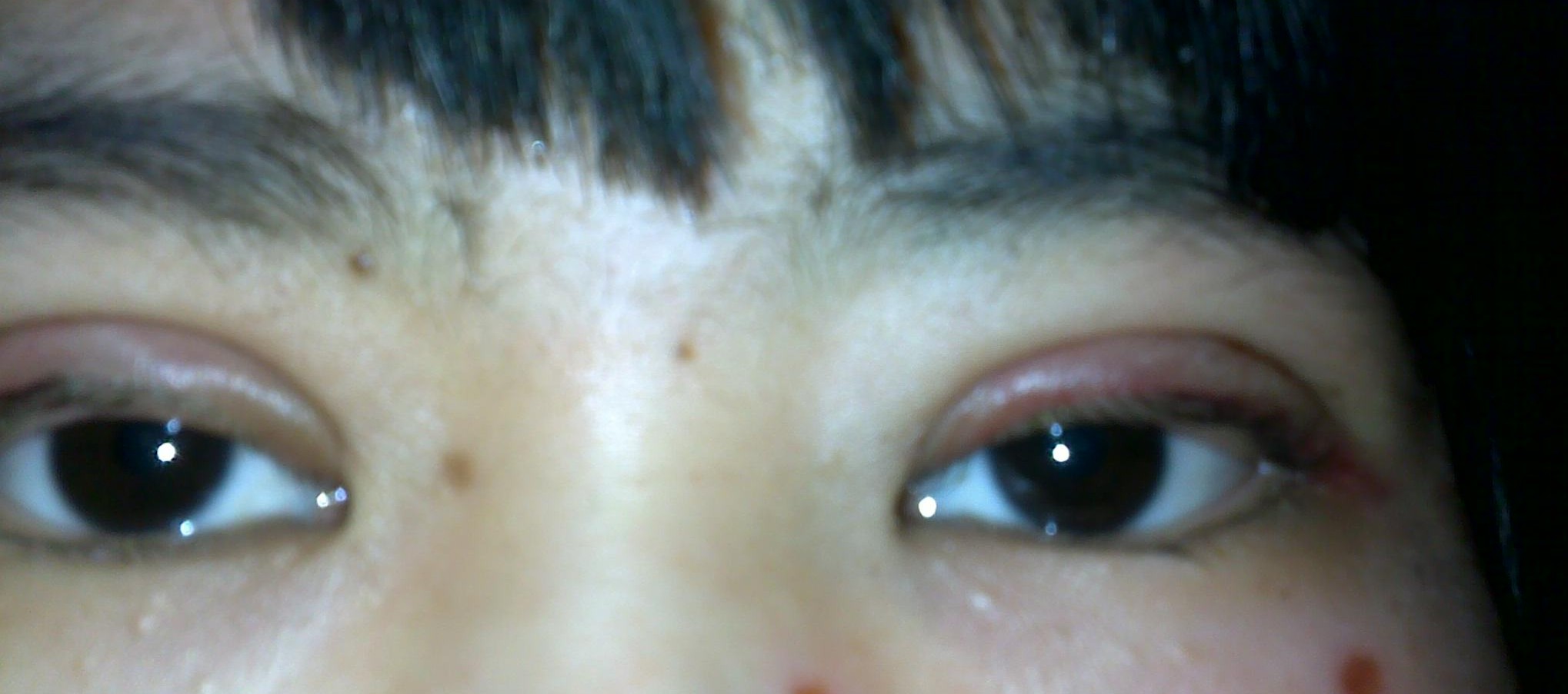 下图是术前拍的照片 眼皮很肿 眼睫毛也被包在里面 双眼皮贴也无法贴上去 总之 每天都跟没睡醒似的
