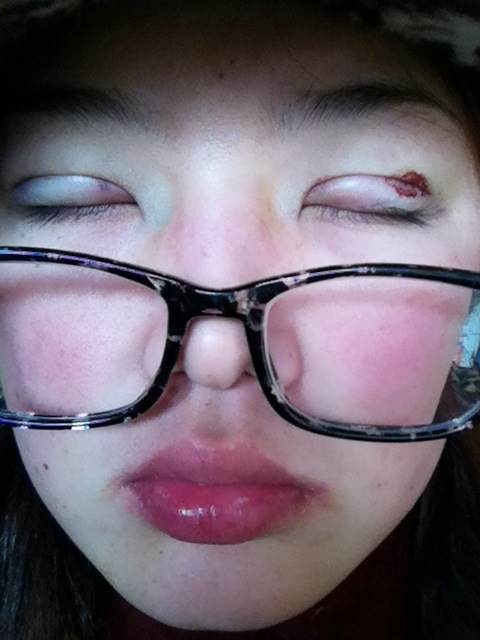 后果就是渗血。建议:做完眼睛后一天后再练习闭眼动作。。不然会痛。会流血。忽略我的烂嘴角吧。