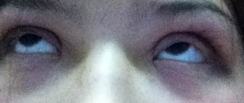 晚上吃了药 。 枕头弄的高高的。因为了解第二天会很肿。。就有心里准备了。第二天醒来。果然。眼睛胀的睁不开。看不清东西。没敢洗脸。就用湿巾擦了下脸。 然后开始观察眼睛。总感觉我的一个是平一个是扇。或者是肿的原因?一个大眼一个小眼。。看着黑呼呼的好吓人。
