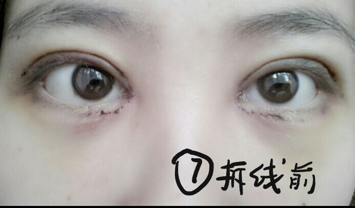 今天上午刚去拆线啦,一开始好害怕的,听别人说有的说疼有的说不疼,比做手术还紧张呢!不过护士小姐好温柔,医生也来看了说可以拆了,然后我就躺上去了。先拆的右眼,没什么感觉,眼泪也没有流,就感觉有东西在碰你。后来拆左眼,明显疼多了,眼泪哗哗的流啊,不过,都结束了就等恢复啦好开心!刚拆眼角有点红呢