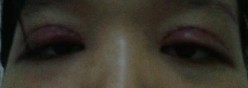 今天拍的,闭眼,还有一些结巴的不敢用力擦掉,还是怕痛啊,等它自然脱落吧