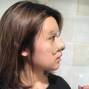 术中:经过医生的面诊后,指出了鼻部所存在的问题:鼻孔较大,鼻翼过宽,鼻部线条不够流畅,有点小小的鞍鼻。我将内心的疑问和期望跟医生进行了充分的沟通,他从专业的角度给我做了解答,并针对性地给出了塑美方案,为我做了隆鼻手术。我做完隆鼻手术后,用冰敷后留院观察了一下下。我做了两个多小时的手术,因为坐手术的时候是局部麻痹,所以,在手术全过程我都感受的到那种感觉,然后我就是很紧张,后背一身汗,医生都在手术台上说我的心跳️好快。但其实我的手术很顺利。