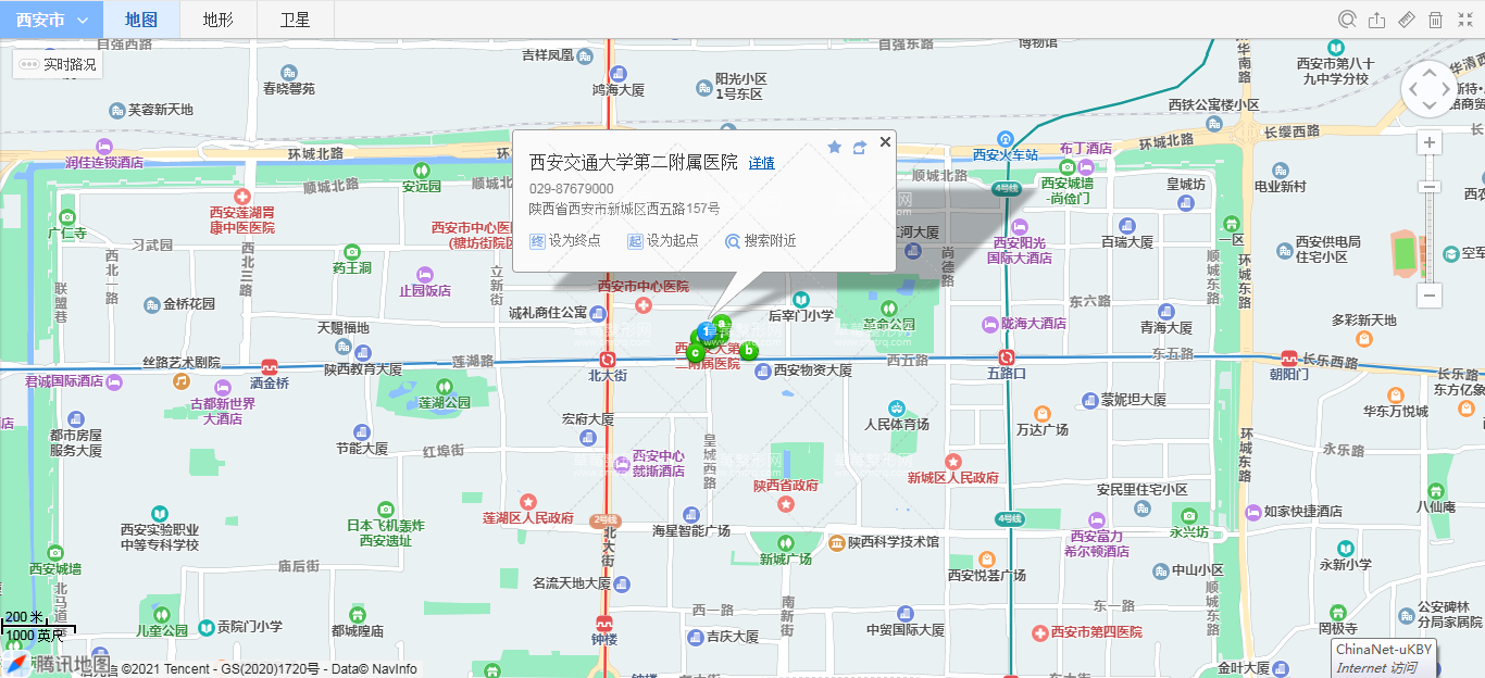 西安北站40米向西南步行 到 北客站 入口 进站8站乘 地铁2号线 (韦曲南方向) 到 安远门 A口(西北口) 出站150米向东步行 到 北关2站乘 236路 (西华门方向) 或 600路 601路 609路 到 北大街300米向东步行 到 西安交通大学第二附属医院,