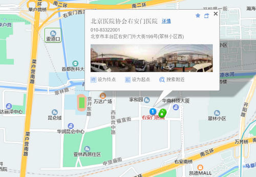 医院地址:北京市丰台区右安门外大街199号(翠林小区西)