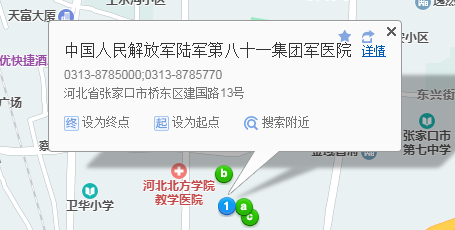 从张家口汽车客运站到陆军第81集团军医院较短路线: