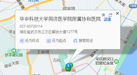 武汉站60米向东北步行 到 武汉火车站 出入口 进站7站乘 轨道交通4号线 (柏林方向) 到 岳家嘴120米向东步行 到 岳家嘴4站乘 轨道交通8号线 (金潭路方向) 到 黄浦路 H口 出站370米向东步行 到 解放大道解放公园6站乘 电3路 (硚口路中山大道方向) 或 549路 712路 到 解放大道中山公园300米向东步行 到 华中科技大学同济医学院附属协和医院华中科技大学同济医学院附属协和医院