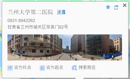兰州站1.3公里向西北步行 到 邮电大楼8站乘 106路 (西站什字方向) 到 解放门330米向东步行 到 兰州大学第二医院。