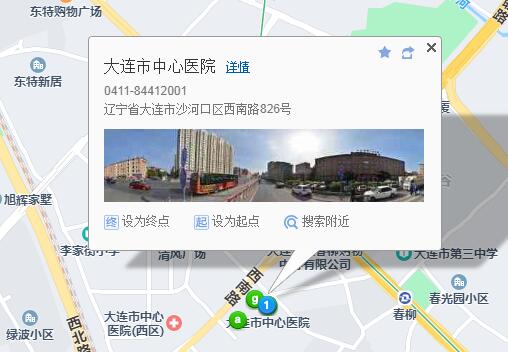 香西游园370米向东北步行 到 侯一小区3站乘 512路 (锦华南园方向) 到 中心医院南院140米向南步行 到 大连市中心医院。