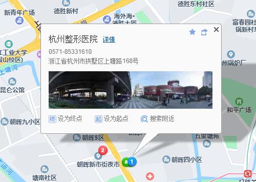 国都发展大厦680米向北步行 到 朝晖二区1站乘 3路 (大关小区方向) 或 90路 26路到 省人民医院(杭州整形医院)50米向东南步行 到 杭州整形医院。