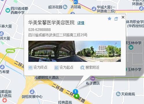 华纳丽尊酒店170米向西步行 到 玉林南街5站乘 77路 (染靛街东方向) 或 79路 211路 到 芳草街430米向东南步行 到 华美紫馨医学美容医院。