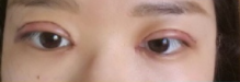 虽然医生说给我永*细的可吸收的线,可缝到第二只的时候还是实在忍不住了,拜托护士阿姨压住我的手,我不敢大声叫怕扯到面部肌肉只能一边哼哼一边忍到结束。下了手术台我都知道自己是哪里来的勇气,可能是对单眼皮肿眼泡和被压塌的睫毛怨气太大了吧。盖上纱布以后我两个服睛都看不见了,盲人一样被父母领着。那会眼皮很疼,冰敷也没有多大用,只能忍着。到晚上的时候就差不多已经不疼了,后来也没什么痛感。