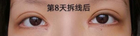 拆线那天被护士姐姐吐槽清理不到位,我一直以为眼角那是伤口不能使劲碰,护士姐姐说那是血痂,要清理掉,她帮我抠下去了......贼疼......还在左眼角留了_个坑......不过目前已经长好了,所以姐妹们一定要仔细清理不要怕疼!