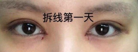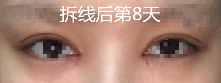 术后第十五天,左右眼形状有点不一样,这个我术前也是做好心理准备了,右眼稍微有点点高,眼角有点增生,形状满意,终于告别了双眼皮贴。开心。