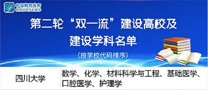 2月14日,国家教育部 、财政部 、发展改革委公布了第二轮“双一流”建设高校及建设学科名单,四川大学口腔医学入选新一轮“双一流”建设学科。