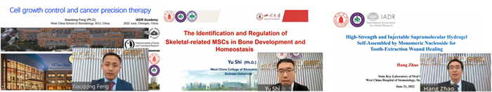 The International Association for Dental Research (IADR) Academy, themed with "Reconstruction and Regeneration of Oral and Maxillofacial Hard Tissues", was successfully held online by West China School of Stomatology (WCSS) on June 21st, 2022.