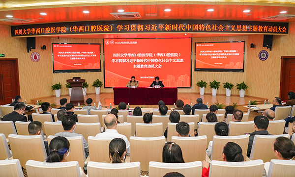 4月24日,我院在教学楼学术报告厅召开学习贯彻习近平新时代中国特色社会主义思想主题教育动员大会。四川大学主题教育第二指导组组长郝清华同志,以及冷泠同志、田彬同志、林祎同志等指导组成员出席会议,教育部高校党建联络员、重庆大学党委原副书记肖铁岩同志列席会议,我院全体院领导、两委委员、全体科主任、党支部书记、护士长、师生医护党员代表等参加此次会议,会议由院党委书记谭静同志主持。