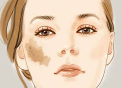 黄褐斑 黄褐斑也称肝斑,为面部的黄褐色色素沉着。多对称蝶形分布于颊部。多见
