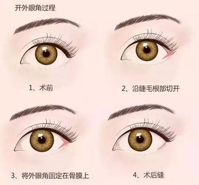 开外眼角专业名称:外眦开大术别名:外眦成形术开外眼角也称之为外眦开大术,是一种让眼睛变大的整形手术。开外眼角手术适合于严重的内眦赘皮或是伴发邻近部位畸形者,开外眼角手术主要通过切开眼睛外眼角部位,延长眼角水平长度的手术,开外眼角手术能够不留疤痕的延长眼角的长度。开外眼角手术方法主要有两种:适合于轻度的眼裂过大者使用的单纯缝合法,此方法操作简单但是术后易复发;以及适合于麻痹性睑外翻所致的睑裂过大者使...