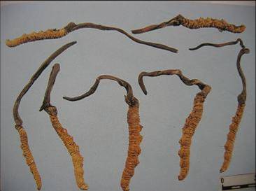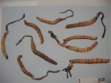 冬虫夏草为传统的名贵中药,本品为麦角菌科真菌冬虫夏草菌Cordyceps sinensis(Berk)Sacc.寄生在蝙蝠蛾科昆虫幼虫上的子座及幼虫尸体的复合体。夏初子座出土、孢子未发散时挖取,晒至六七成干,除去似纤维状的附着物及杂质,晒干或低温干燥。本品有调节免疫系统功能、抗肿瘤、抗疲劳等多种功效。主要产于西藏、青海、四川、云南、甘肃和贵州等省及自治区的高寒地带和雪山。市场上有以亚香棒虫草、蛹虫草、新疆虫草等伪品及多种造假制劣手段。