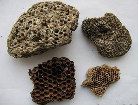 蜂 房为胡科昆虫果马蜂Polistes olivaceous (DeGeer)、日本长脚胡蜂Polistes japonicus Saussure或异腹胡蜂Parapolybia varia Fabricius的巢。具有祛风,攻毒,杀虫,止痛的功效。用于龋齿牙痛,疮疡肿痛,乳痈,瘰疬,,皮肤顽癣,鹅掌风等。市场上常见以山蜂房充蜂房的现象,应注意区别。
