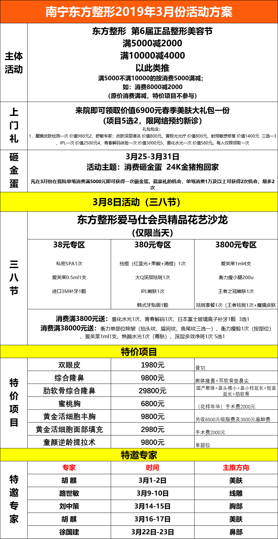 沈阳名流医疗整形美容医院 30周年庆整形活动价格表