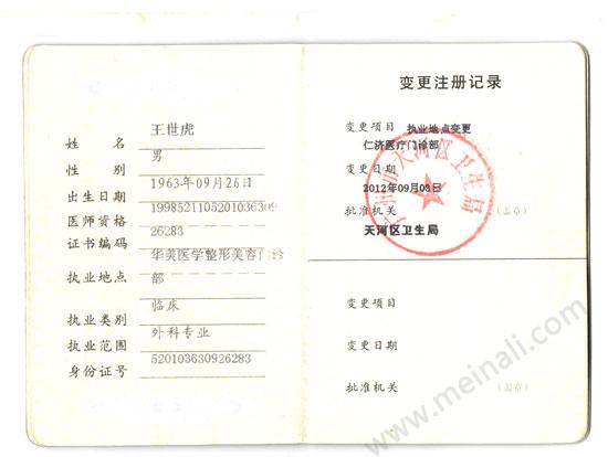 坐诊医院:广州军美医疗美容门诊部 坐诊地址: 广东省广州市天河区珠江新城花城大道3-7号(南天珠宝世界西区2楼) 医生职称: 执业医师 医生经验: 20年以上 医生籍贯: 中国内地 医生类别: 整形外科医生 医生介绍: 王世虎,现任广州军美整形与抗衰老医学美容中心主任,是一位国内公认的整形外科领袖、南中国隆胸吸脂权威专家,是中国美容与整形最高荣誉“白天鹅”医...