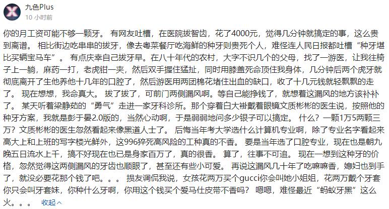 “从来没想到过自己身上最值钱的竟然是牙[笑哭],有两颗牙坏了咋办?”