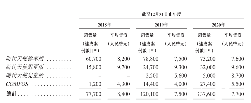 截至目前,时代天使分别推出了标准版(现已升级成经典版)、冠军版、儿童版和COMFOS等4款产品。招股书显示,该4款产品2020年的平均售价分别为7600元、9600元、8700元和5500元。安信证券研报指出,上述4种产品的建议零售价分别为3.2万元、4万元、2.6万元和2.4万元。据媒体报道,今年以来,隐适美为抢夺市场份额开始降价促销。4月,隐适美再次调低产品售价,终端消费价最低降至2.5万元左右的水平。