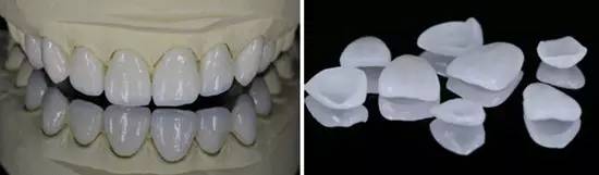 瓷贴面可改变牙齿的颜色和形态,从而达到美观的效果,医生磨去牙齿表面的0.2-0.5mm厚度,然后将制作好的瓷贴面粘接到牙齿上。