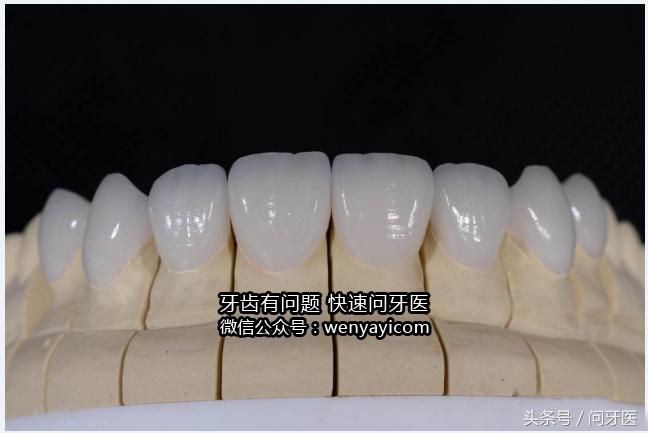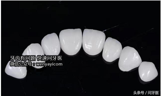 下图:瓷贴面在模型上的效果。(贴面是根君模型制作的,模型跟口内情况精确一致)