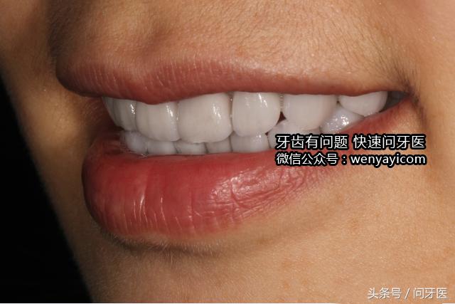 下图:口腔侧面照,观察微笑裸露的牙齿颗数