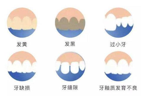 3.牙齿形态异常、过小牙、过短牙、磨损牙等;