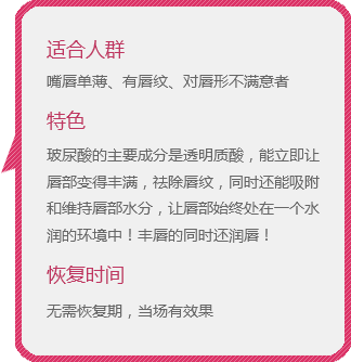 能快速拥有性感嘴唇,注射后没有痕迹,不影响正常生活工作。