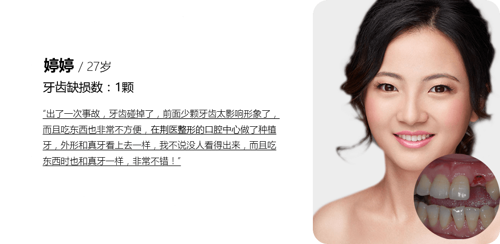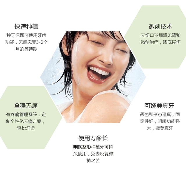 荆医整形牙齿种植系统采用手动植入方法,有效保留自体骨进行天然修复,同时种植牙的人工牙根深植于牙槽骨中,可以形成像真牙一样对牙槽骨的刺激,牙根和牙床发生骨能融合牢固地长在一起,坚固耐用。效果好美观性能和自然牙齿一样坚固耐用。