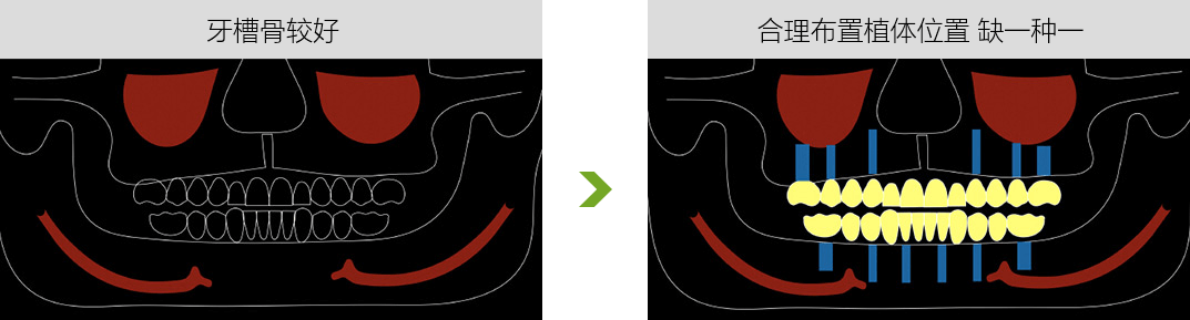 种植手术对患者的牙槽骨有一定要求,一般人工种植体长10-14毫米,直径为3-4.5毫米。如果牙槽骨较好,即可直接做种植牙手术,医生会根据患者牙齿情况合理布置种植体的位置,缺一颗补一颗。