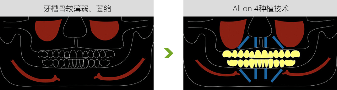 All on 4种植技术,只需种植4/8,就能恢复半/全口牙齿,一点受力会均匀分布到整体,这大大增加了种植牙的稳固程度。