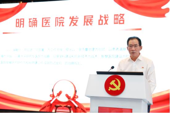 接下来,党委书记王涛同志作题为《以高质量党建引领医院高质量发展》的报告,对2021年7月以来院党委的阶段性工作进行总体回顾,并就下一步主要工作做出安排。王涛同志表示,在市委和市委卫生工委的领导下,医院党委坚持以习近平新时代中国特色社会主义思想为指引,以“深融合、共促进、同部署”为工作主线,以开展党史学习教育工作为契机,以党建“四有工程”示范点建设和公立医院党建重点任务清单为抓手,强化党建在党风廉政、疫情防控和高水平医院建设等工作中的引领力,助力医院迈向公立医院高质量发展新时代。