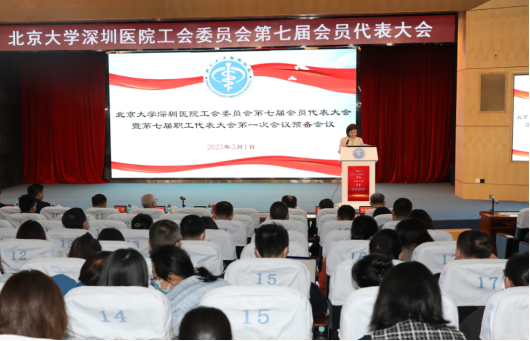 2023年3月1日下午,北京大学深圳医院工会委员会第七届会员代表大会在综合楼七楼会堂隆重召开。来自医院各个岗位的228名代表参加了会议。