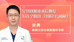 全切双眼皮术后恢复有几个阶段 分别多长时间 任何手术都有它的恢复时间,一般是半年,这个半年我们讲的是完全恢复。一般情况下我们做双眼皮手术,都是在术后五天或者六天七天来拆线。拆了线以后可以洗脸化妆,你在走出去的时候别人基本上看不出来。在两周到四周左右的时候基本上水肿已经大部分消退,但这个时候痕迹相对来说会比较明显,也就是说我们讲的疤痕增生期。疤痕增生期一般是在前三个月明显些,这是所有人都会经历的一个过程。这个时候我们的眼角或者是双眼皮,痕迹会发红发硬,有时还会痒,这是一个正常的恢复阶段。到了三到六月它是一个疤痕的消退期,这个时候我们眼部的红、凸起、硬都会慢慢的消失。恢复的跟我们周围的皮肤色泽和弹性会差不多,那么这个就是我们讲的一个半年恢复期。