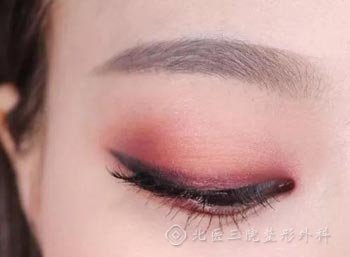 除了棕色的眼线,其实生活中还可以尝试酒红色的眼线。其实这类深色系单品在日常中都是可以大胆尝试的,不会像黑色眼线那样锐利,在强调眼型的同时富有浪漫感,可以直接当作眼线来画,也可以在后半段拉长眼尾,注意不能太粗,不然会显得眼睛肿,而眼妆也应该向偏红色系靠拢。
