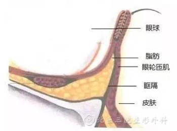 眼袋的发生主要和三个组织结构相关,眶隔、眼轮匝肌和皮肤。年轻人眼袋多由于下睑眶隔松驰,使得下睑脂肪凸出,出现眼袋外观。中年人及老年人眼袋,则不单存在眶隔松驰,同时也有眼轮匝肌和皮肤松驰的因素参与其中,往往三者共同造就了眼袋外观。因此,如果参与眼袋形成的因素越多,组织松驰程度越严重,眼袋就就会变得越大。