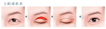 上睑成形术:上睑成形术其实也就是我们所熟悉的切开法双眼皮手术,手术通过重睑切口单纯去除多余松弛的皮肤或行重睑术的同时去除多余皮肤,解决上睑皮肤松弛情况。