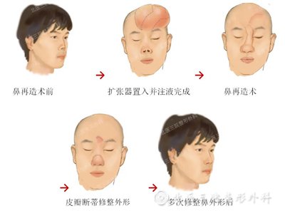 近几十年来,随着皮肤组织扩张器在临床上的广泛应用,我科采用扩张后的额部皮瓣法行鼻再造术,治疗了众多患者,取得了较传统方法更满意的效果。