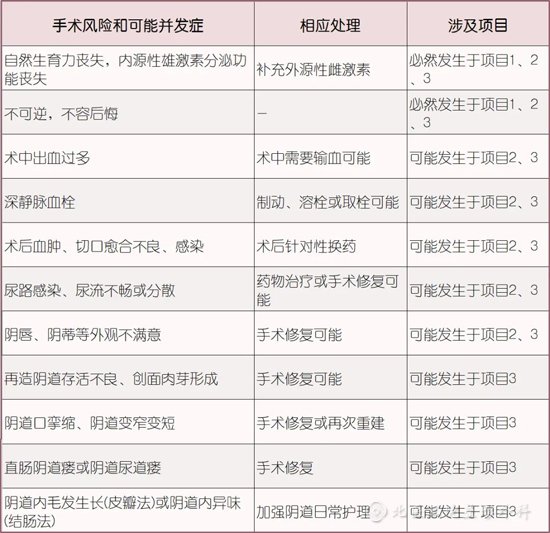 • 选用阴囊皮瓣法阴道成形者,提前半年进行会阴部脱毛(约进行 3~5次,每次间隔一个月) ;