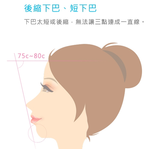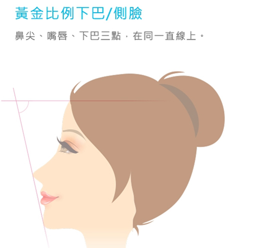所謂完美的下巴比例線是:鼻尖對下巴斜45度角;而理想均衡的下巴長度則是: 額頭約1/3到1/2長。