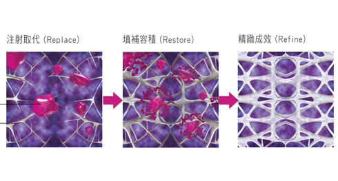 舒顏萃(PLLA)是一種微粒注射型粉末,具生物相容性及分解性,當注射進入真皮層,成份會暫時取代肌膚流失的膠原蛋白,並漸進式地在肌膚組織中釋放作用,促進膠原蛋白再生,不同於一般填充物質,吸收代謝後將恢復未注射前的原狀,不只填平凹陷處、撫飾老化現象。