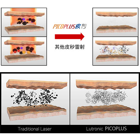 藉由極短皮秒脈衝來傳遞雷射光,作用時間比傳統Q-開關雷射短1000倍。當雷射傳遞的時間越短,治療速度更快速,且幾乎無痛、無修護期,更易去除色素斑病變及刺青,大幅減少副作用。