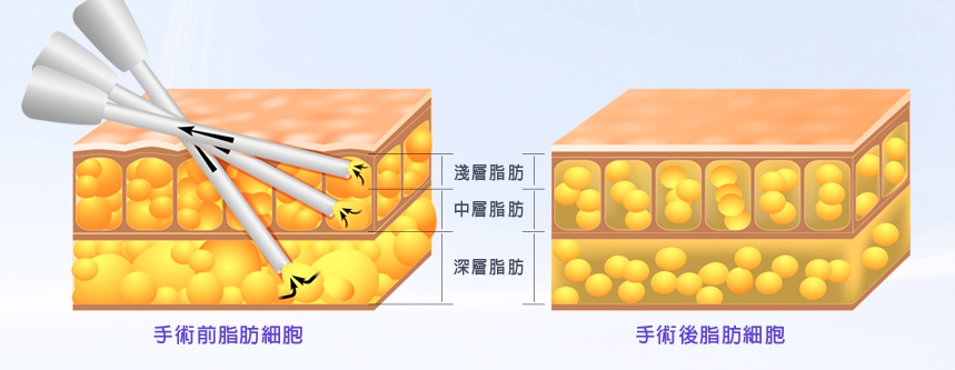 3.抽淺層皮下脂肪可以使得手術後的皮膚較為伏貼,有緊緻的功效