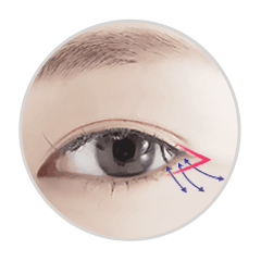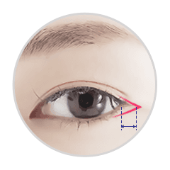 通过开前眼角与上眼角将双眼皮线条的起始点向上前移,可以打造宽大且鲜明的双眼皮线条.