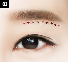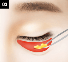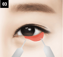 因老化引起皮肤弹性下降导致眼皮下垂时而需要实行的手术,切除下垂的眼皮进行提拉,打造清爽明亮的眼型.